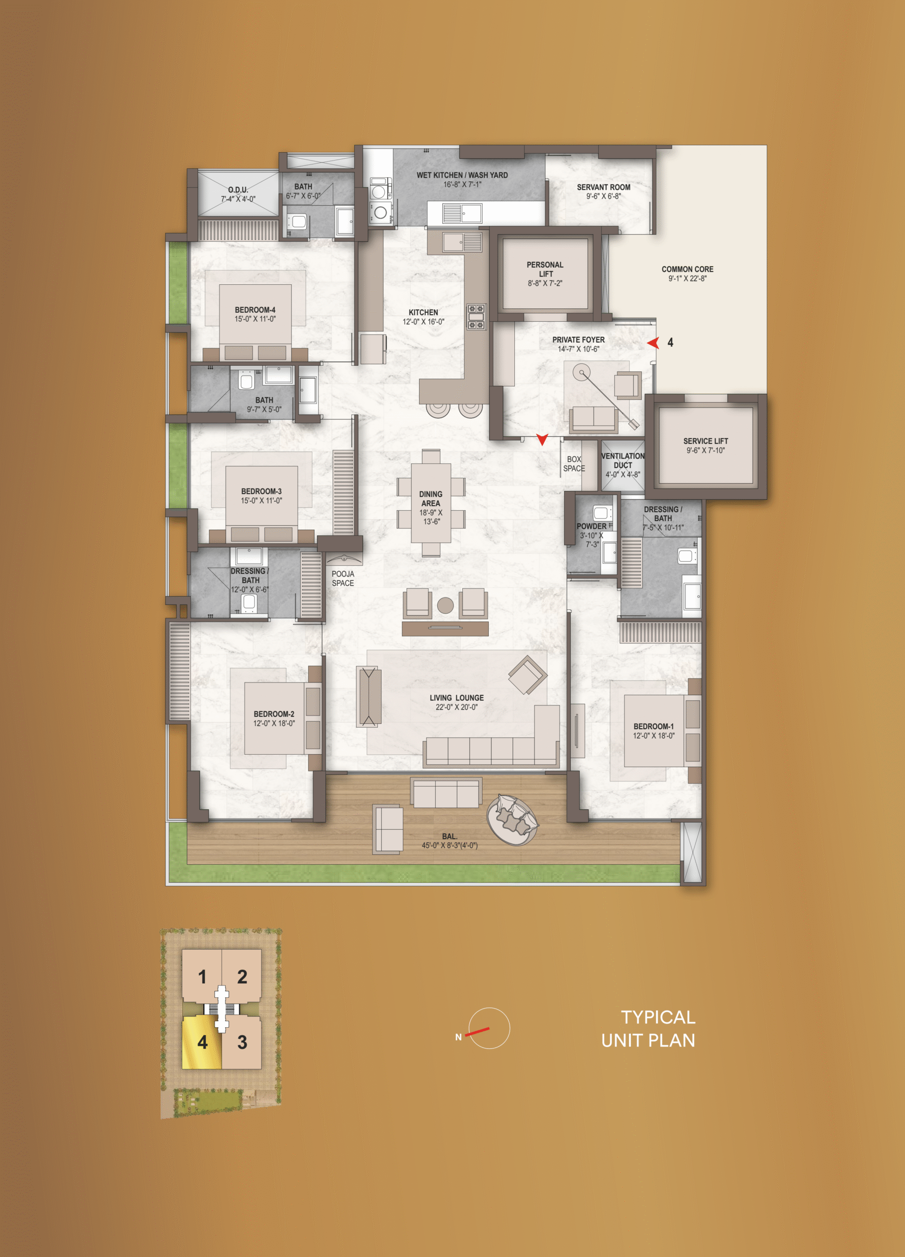 • 4788 Sf : 4 Bhk