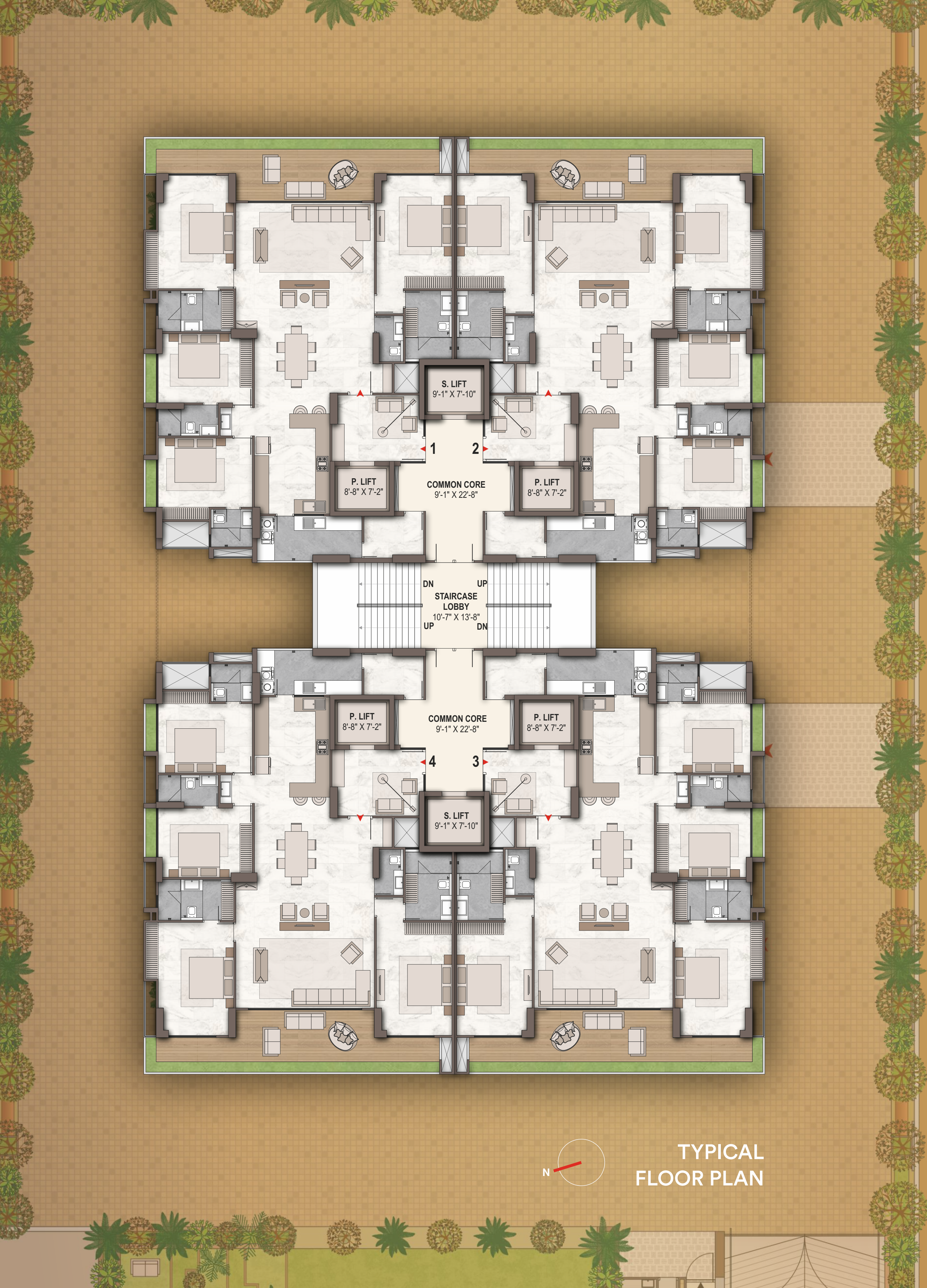 • Each Floor 4 Apartments / 6 lifts
