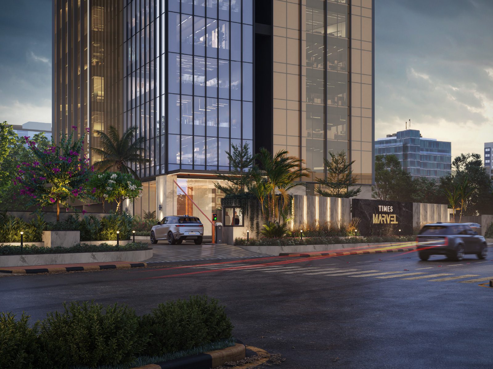 Times Marvel is a premium high-rise commercial development located on Thaltej-Zydus Road in Ahmedabad, Gujarat. Developed by the Times Square Arcade Group , this 35-storey skyscraper is designed to be a landmark for elite corporate offices spaces in the city.