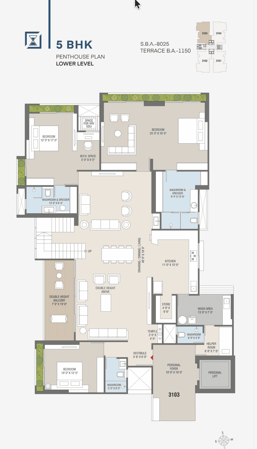 - 8025 Sf : 5 Bhk Penthouse