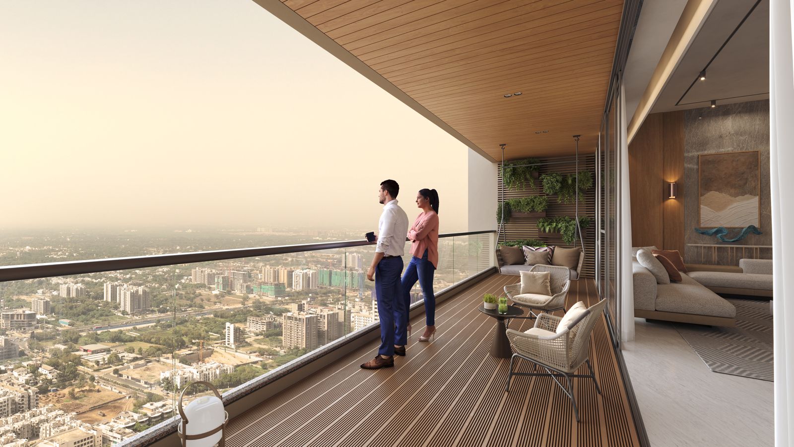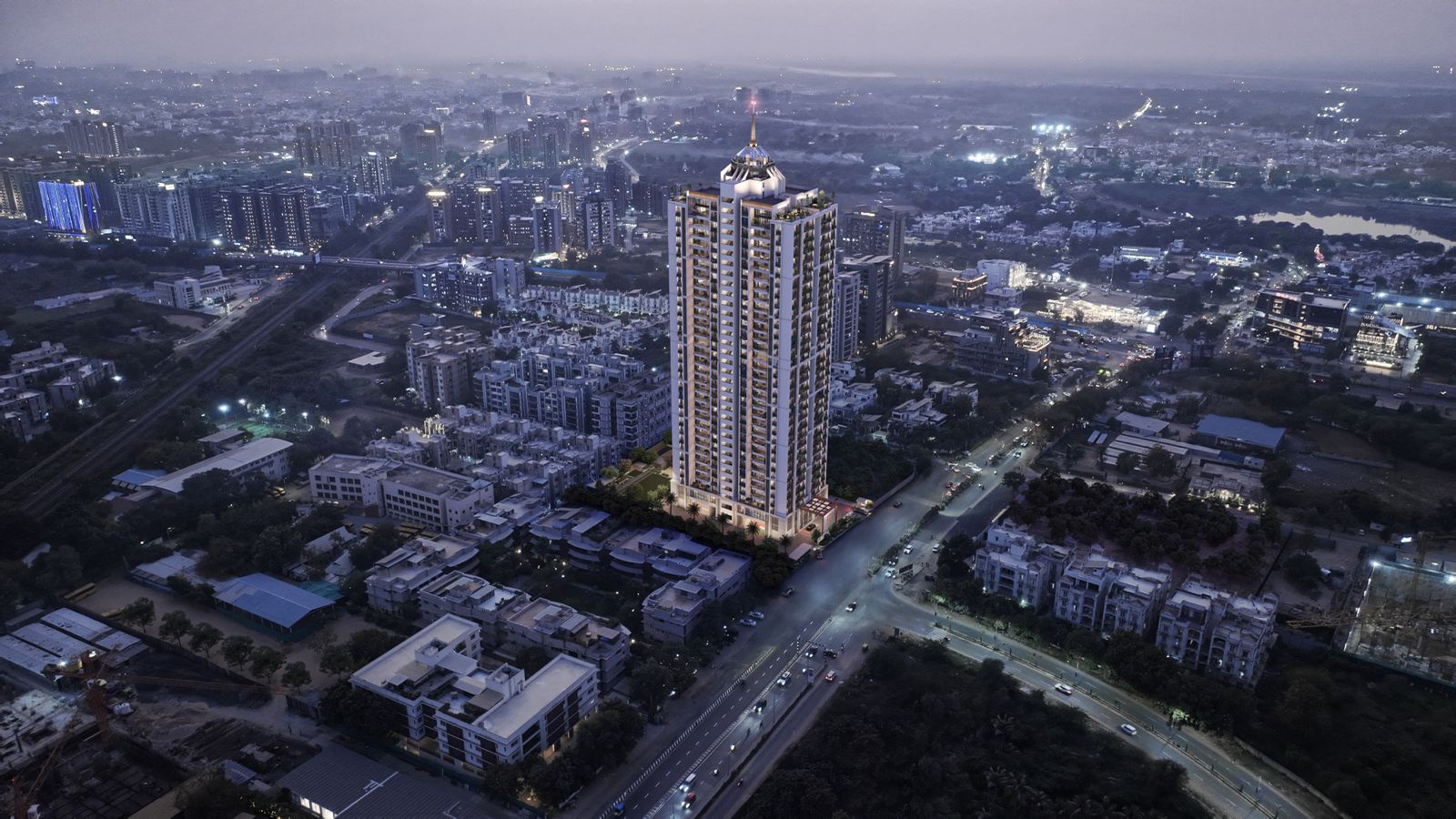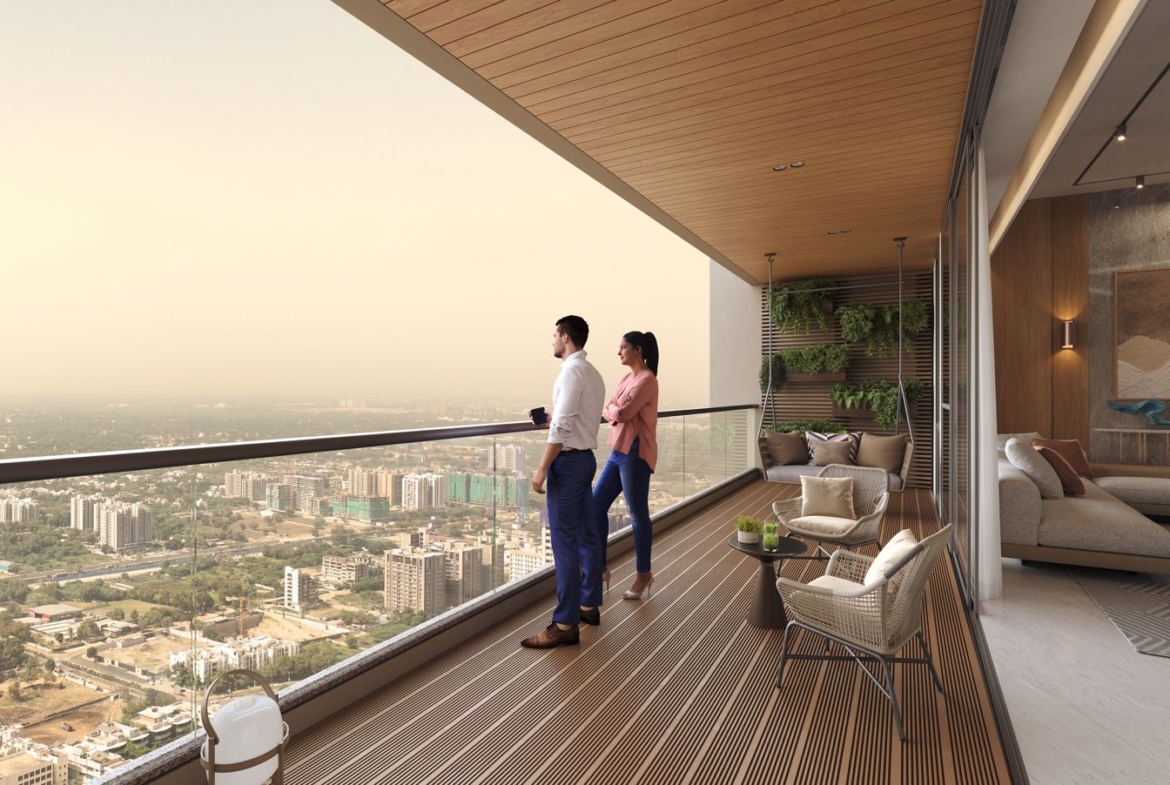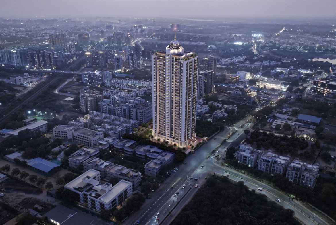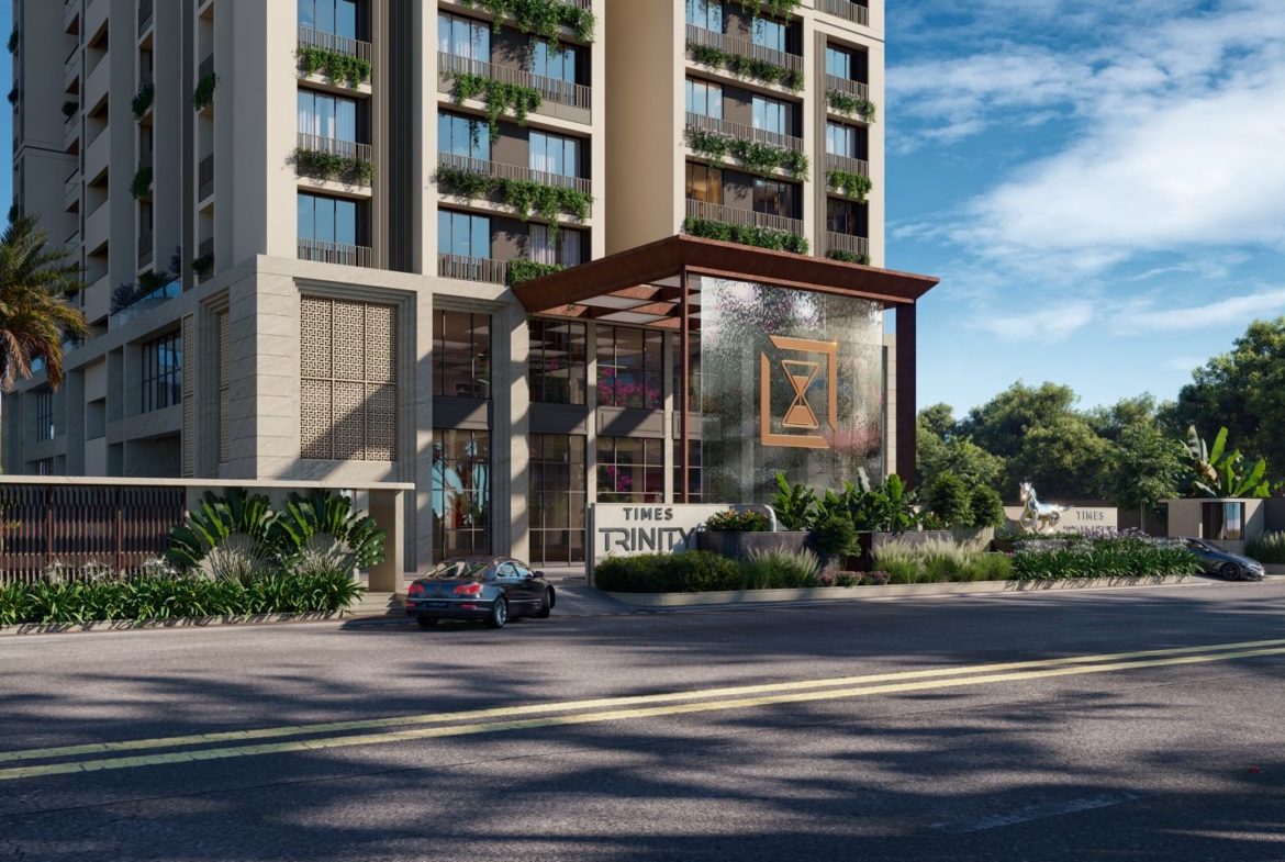 Experience life at the top. The new Times Trinity tower in Thaltej offers 32 floors of pure luxury, featuring 4 & 5 BHK sky-villas with panoramic city views and a private rooftop gallery.